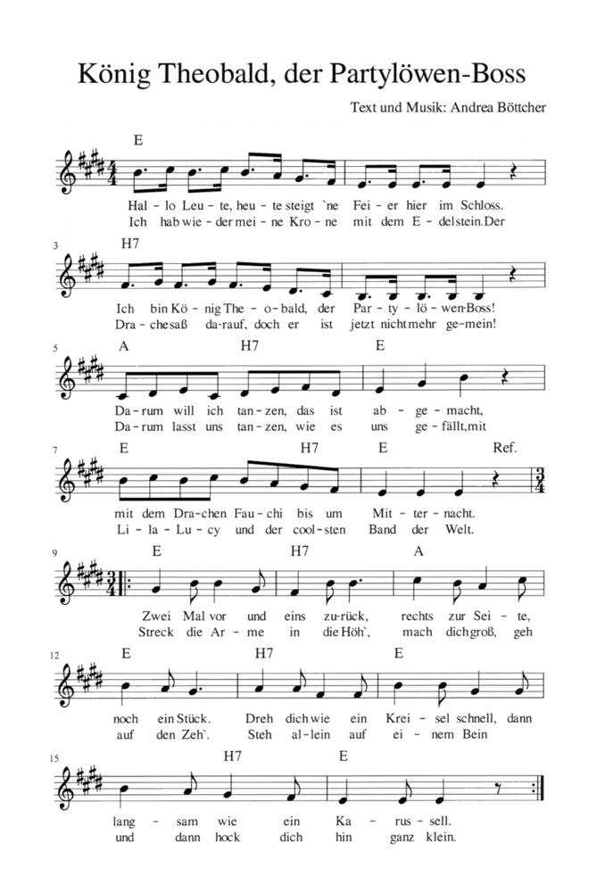 Dieses Lied hat leider nicht mehr ins Buch gepasst. Anhören kann man es nicht, doch dafür gibt's die Noten hier. Zu diesem Lied kannst du auch tanzen! Achte einfach auf den Text.